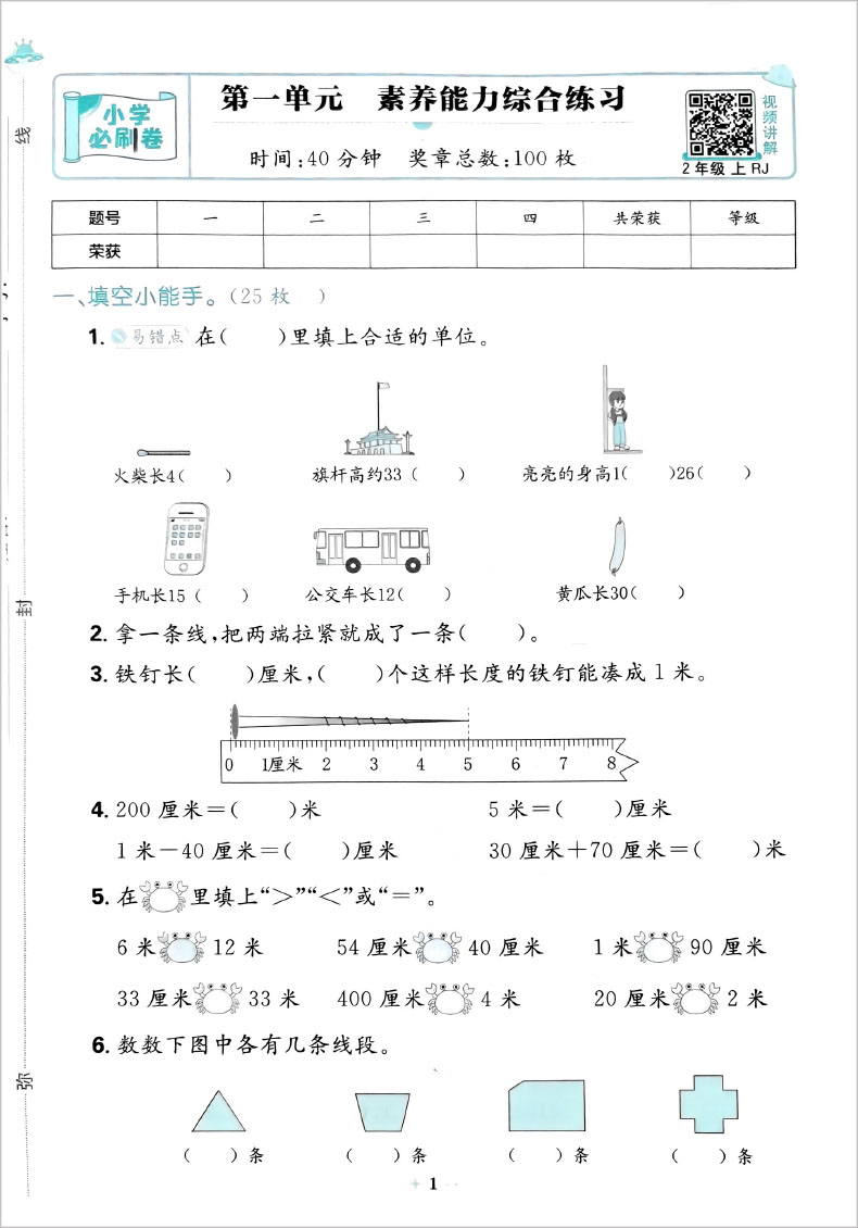 首页> 小学教辅> 二年级> 数学> 小学必刷卷 数学二年级上册 RJ人教版