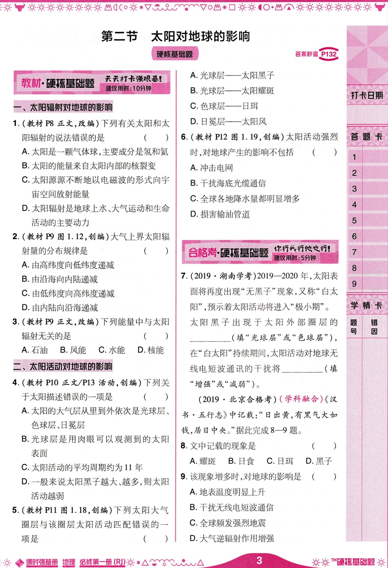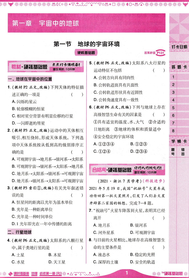 2023版硬核基础题地理必修第一册 人教版 高中课时强基阶段考