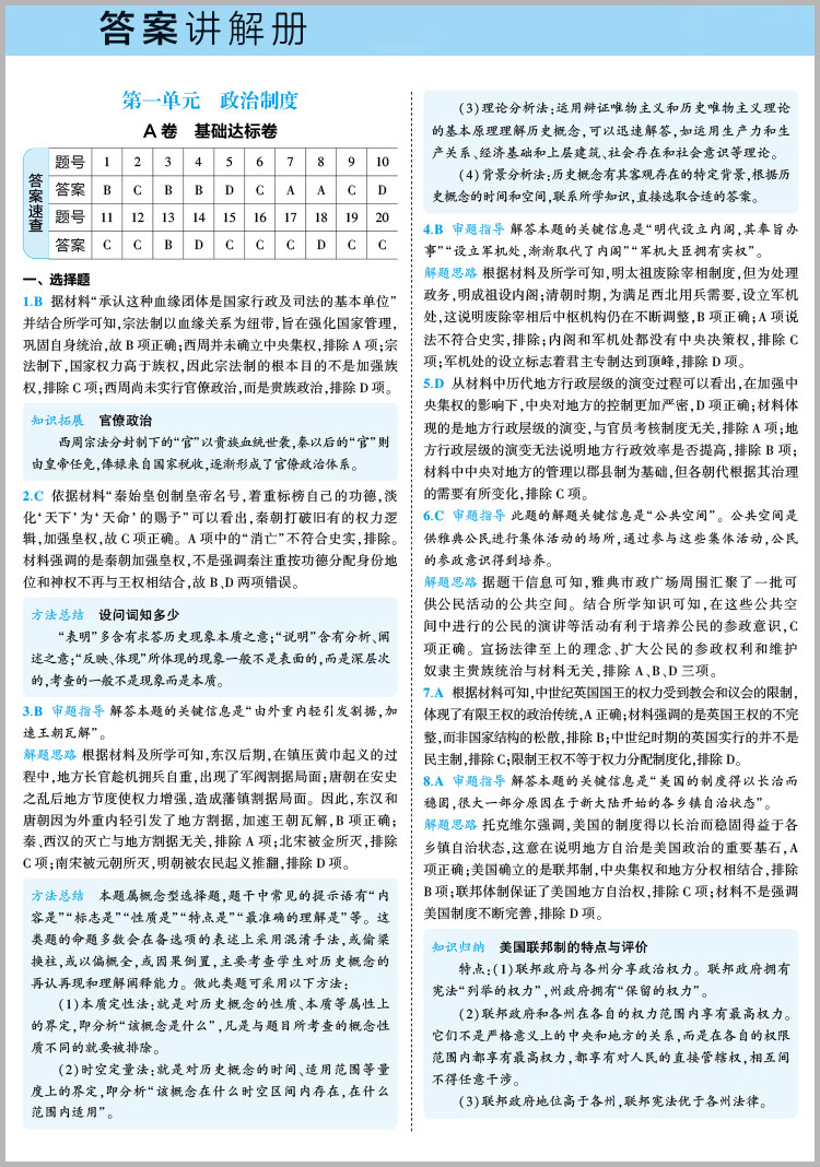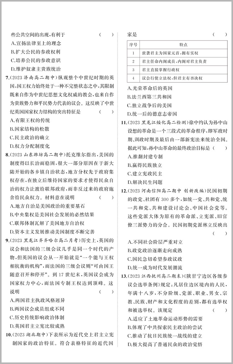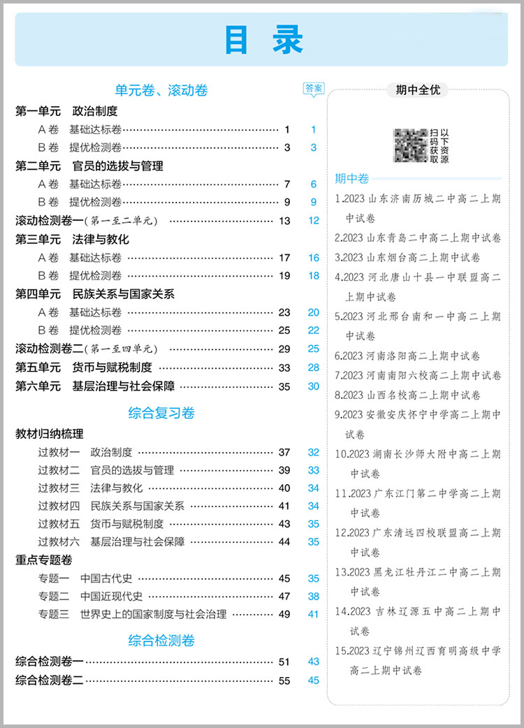 53高中全优卷 历史选择性必修1国家制度与社会治理 人教版 新教材2024版 曲一线