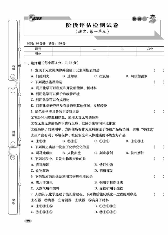 首页> 初中教辅> 九年级> 化学> 聚能闯关100分期末复习冲刺卷化学九年级上册23秋(人教版)