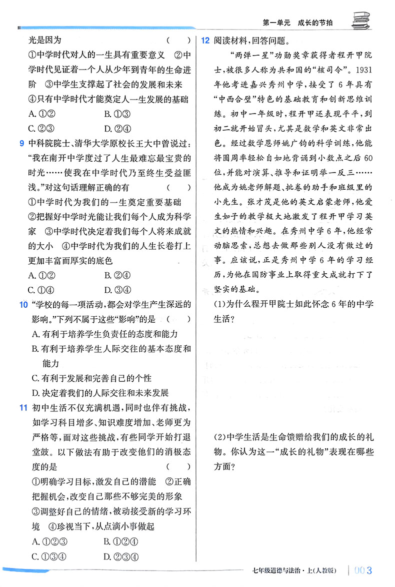 2024版轻巧夺冠优化训练七年级思想政治上 人教版(部编版)