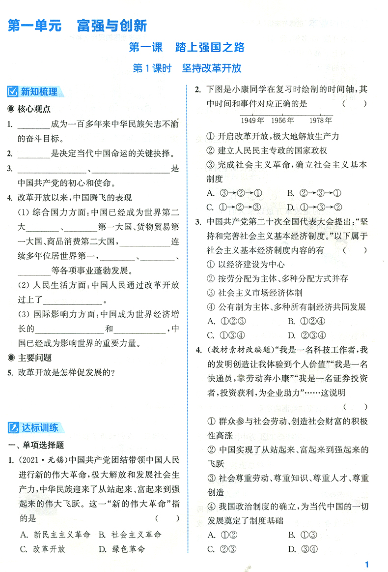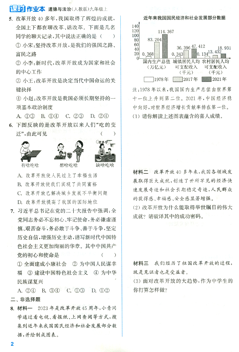 首页> 初中教辅> 九年级> 政治> 课时作业本 道德与法治九年级上 人教版
