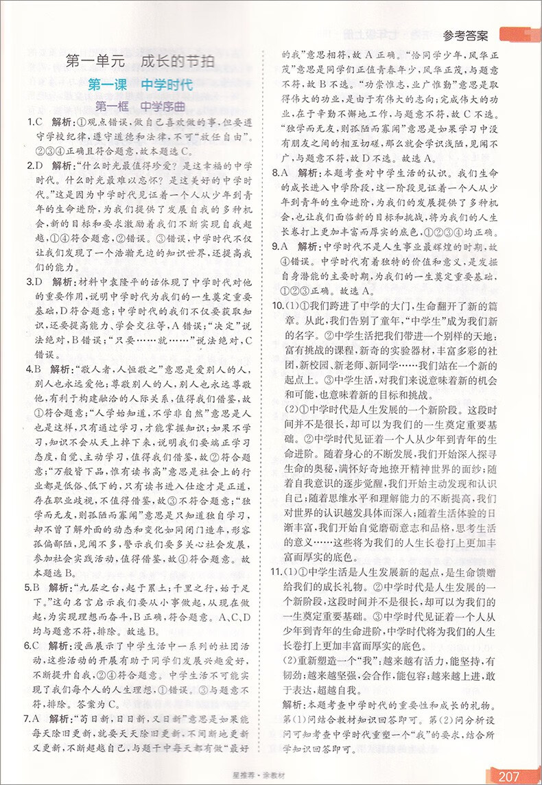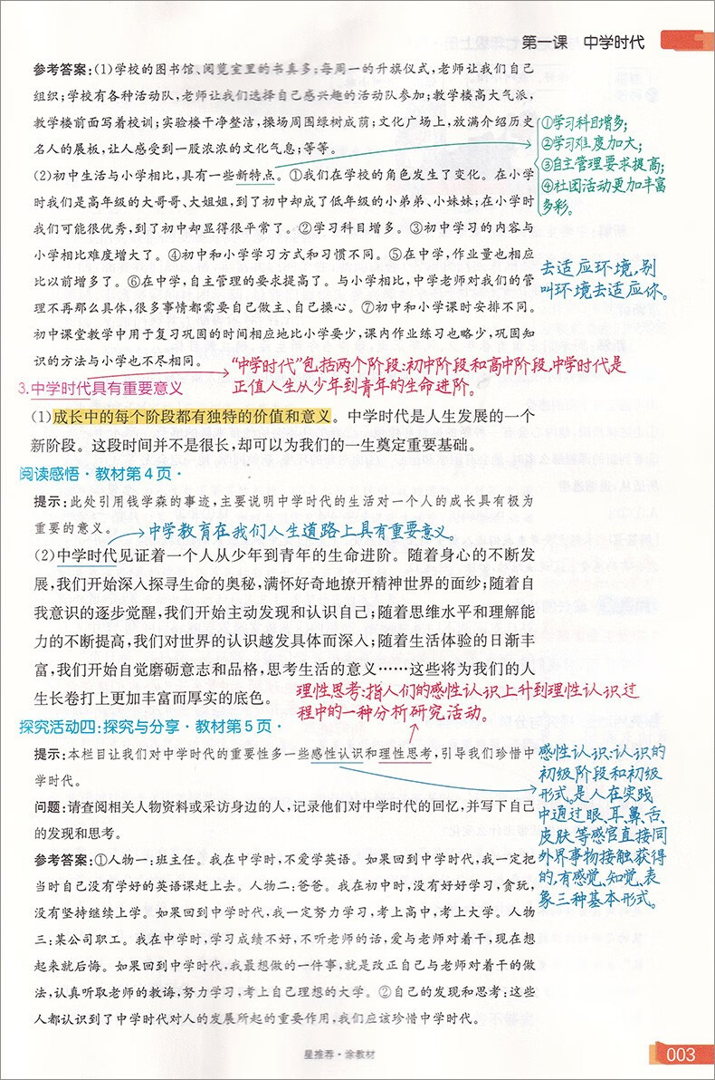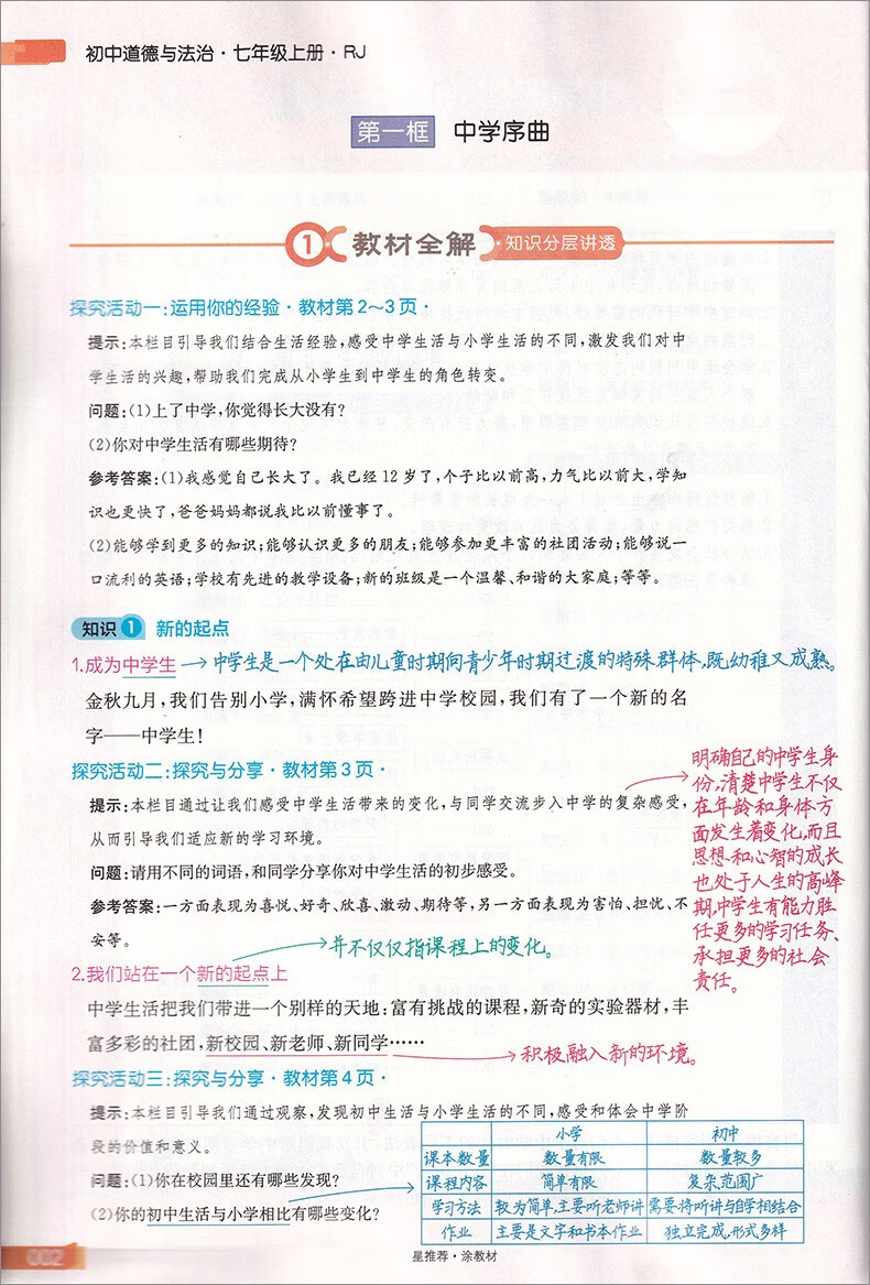 星推荐涂教材 初中七年级道德与法治上册 人教版