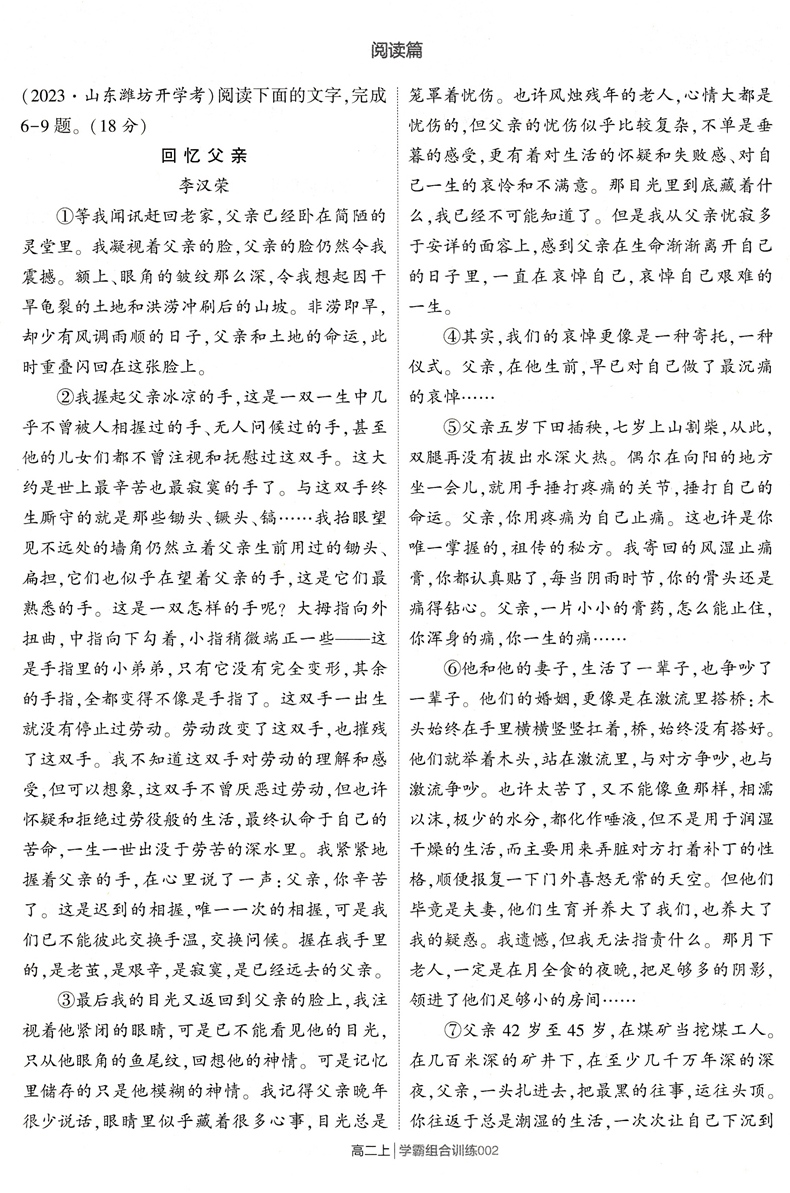 高中学霸组合训练 语文 高二上