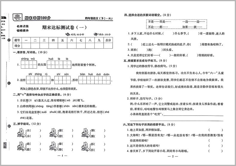 名师名校点金100分 期末冲刺 四年级语文下册 人教版