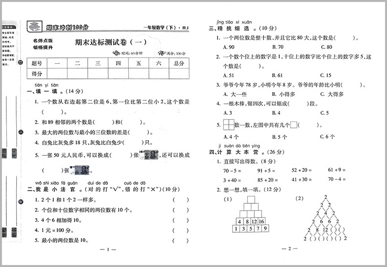 名师名校点金100分 期末冲刺 一年级数学下册 人教版