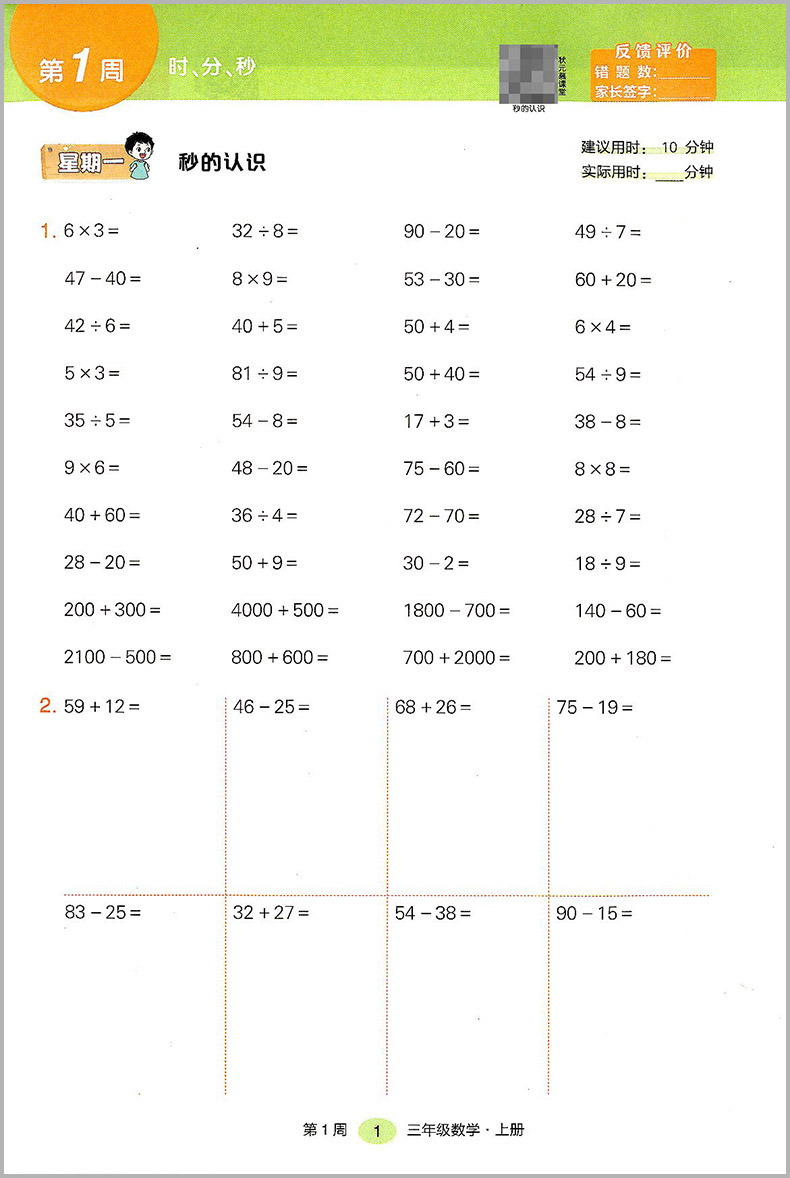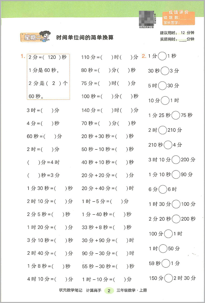 状元数学笔记 计算高手 数学三年级上册 人教版