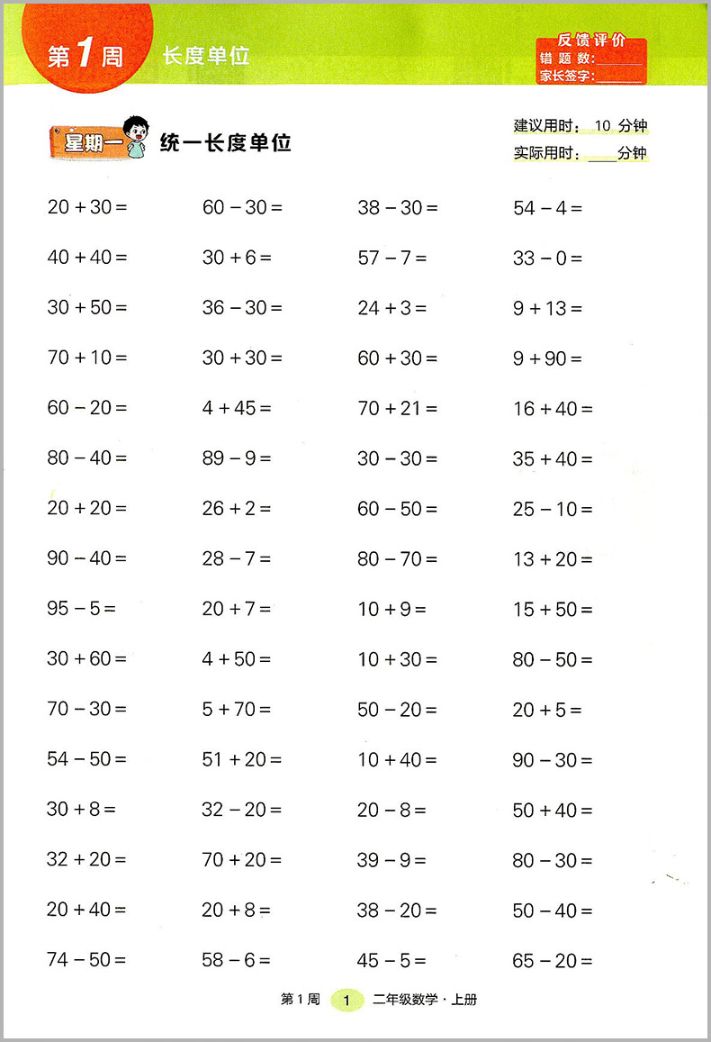 状元数学笔记 计算高手 数学二年级上册 人教版