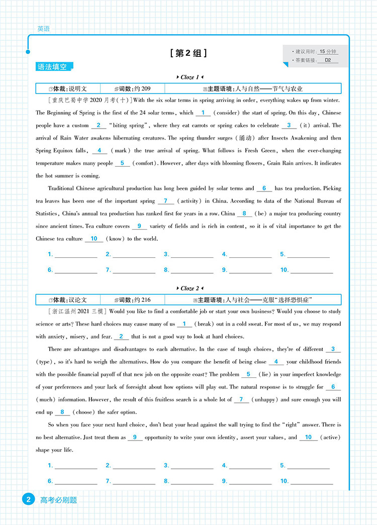 高考必刷题复习划重点 分题型强化英语 新高考2022版