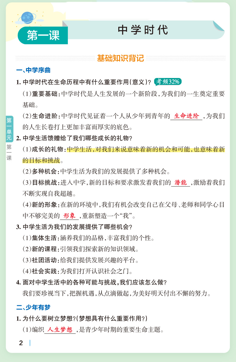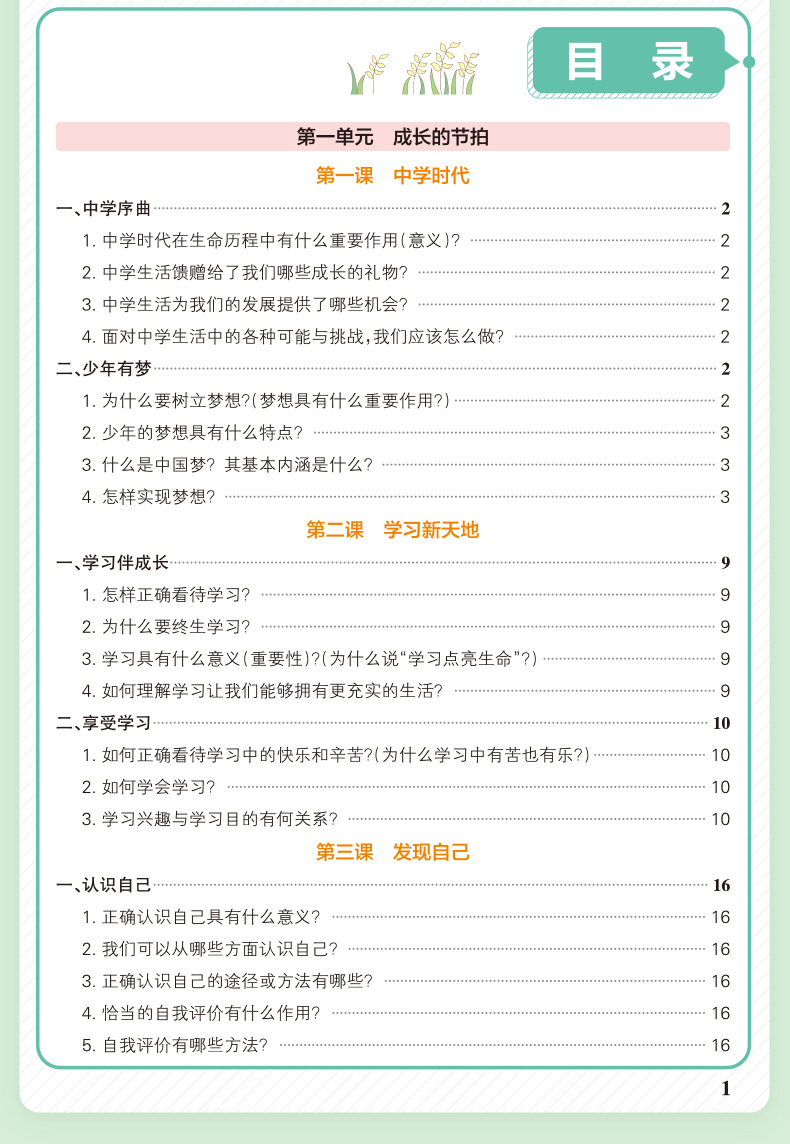 PASS绿卡 学霸期中期末速查速记 道德与法治 七年级上册人教版