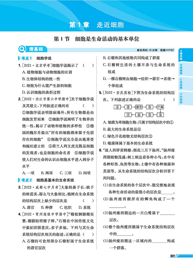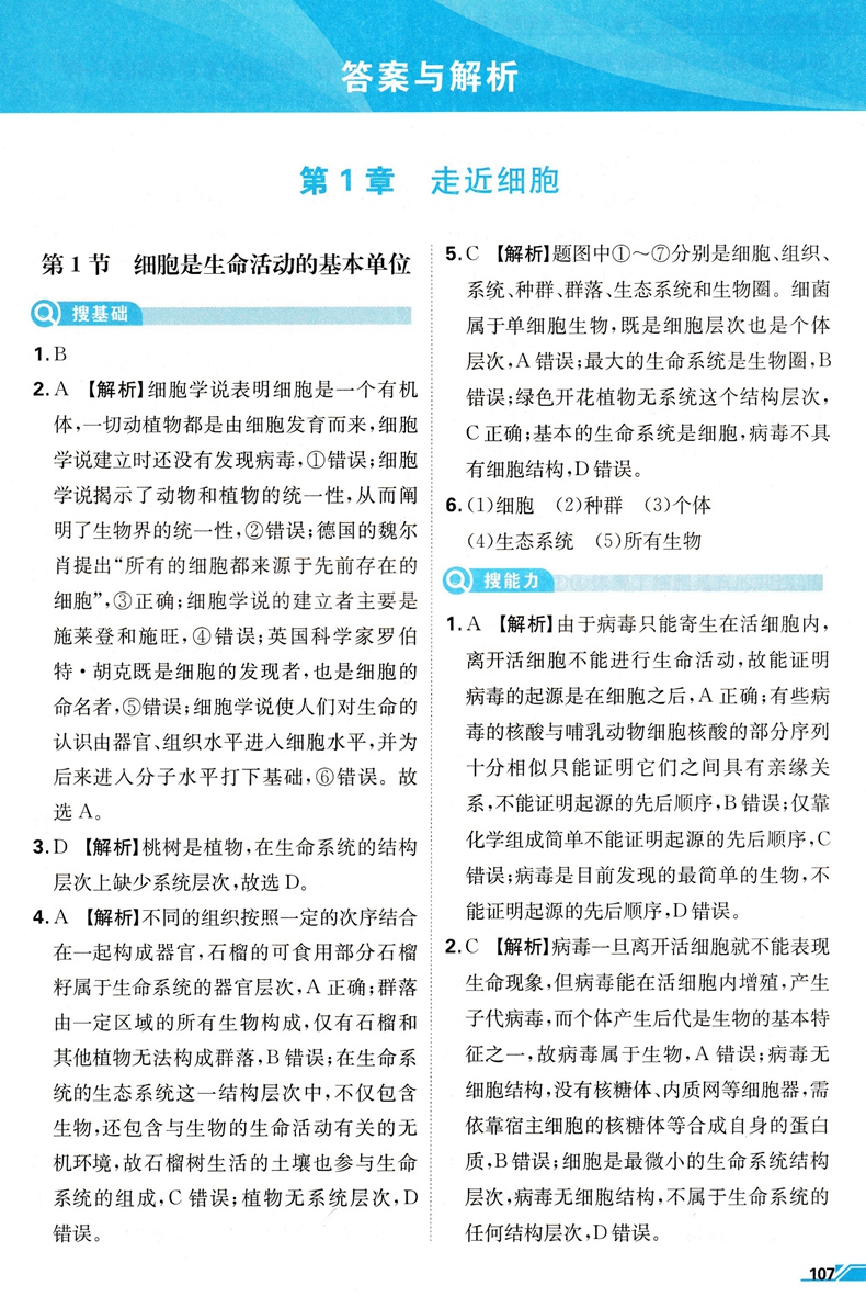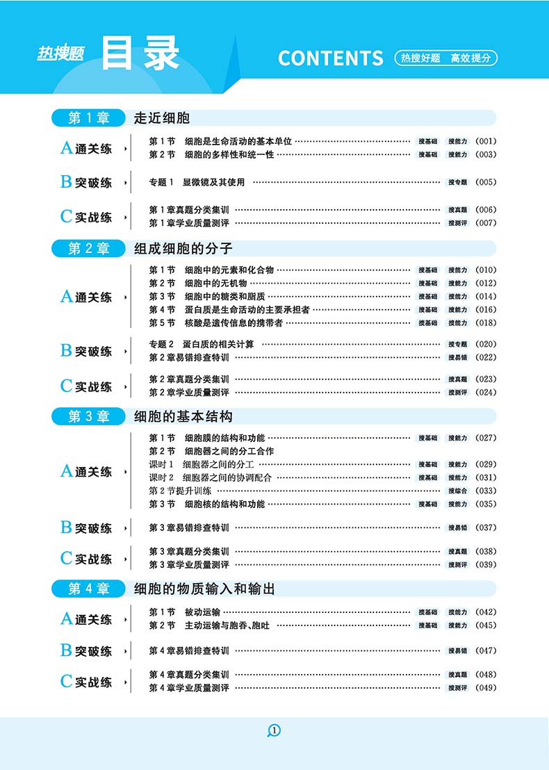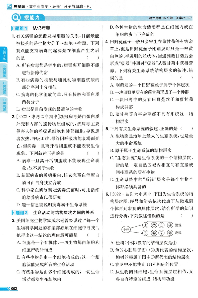王后雄热搜题 高中生物学必修1 分子与细胞 人教版