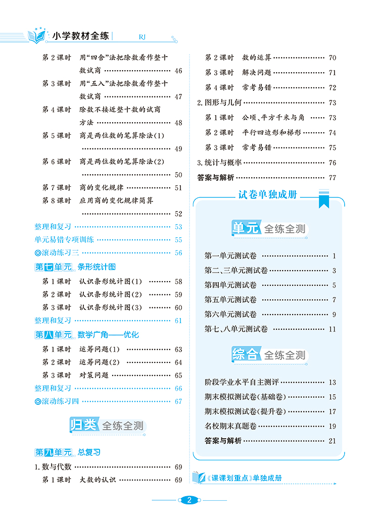 小学教材全练 四年级数学上 人教版 薛金星