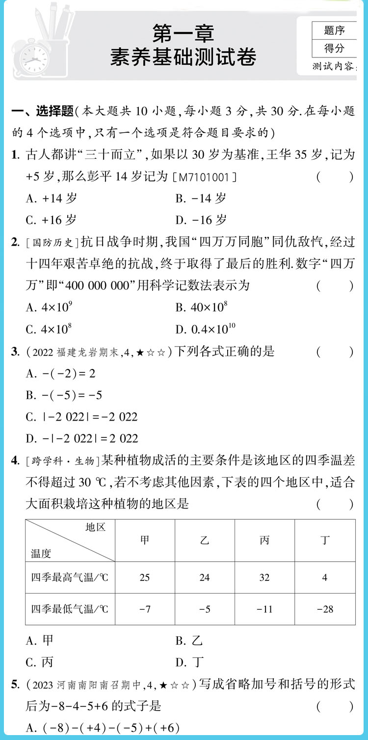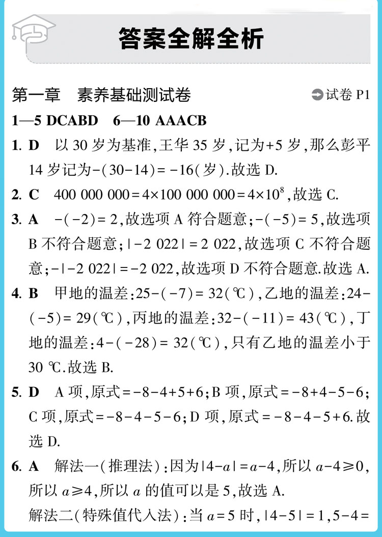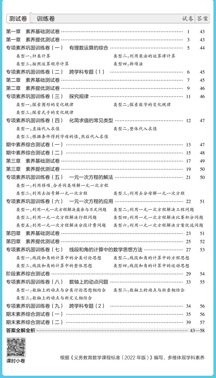曲一线 53初中试卷数学七年级上册 5年高考3年模拟 2024人教版
