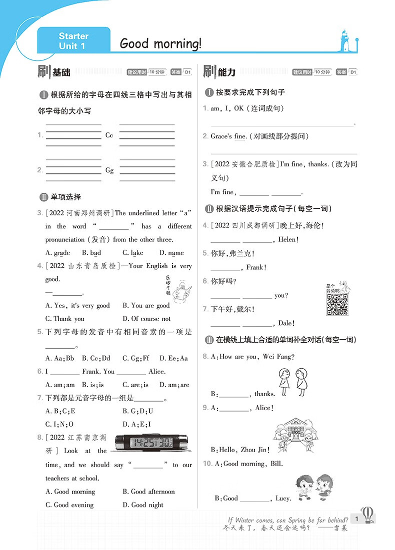 2024版初中必刷题七年级上册英语 人教版 理想树