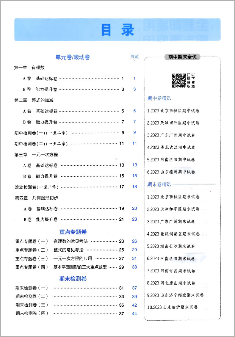 2024版 53全优卷初中七年级上册 数学 人教版