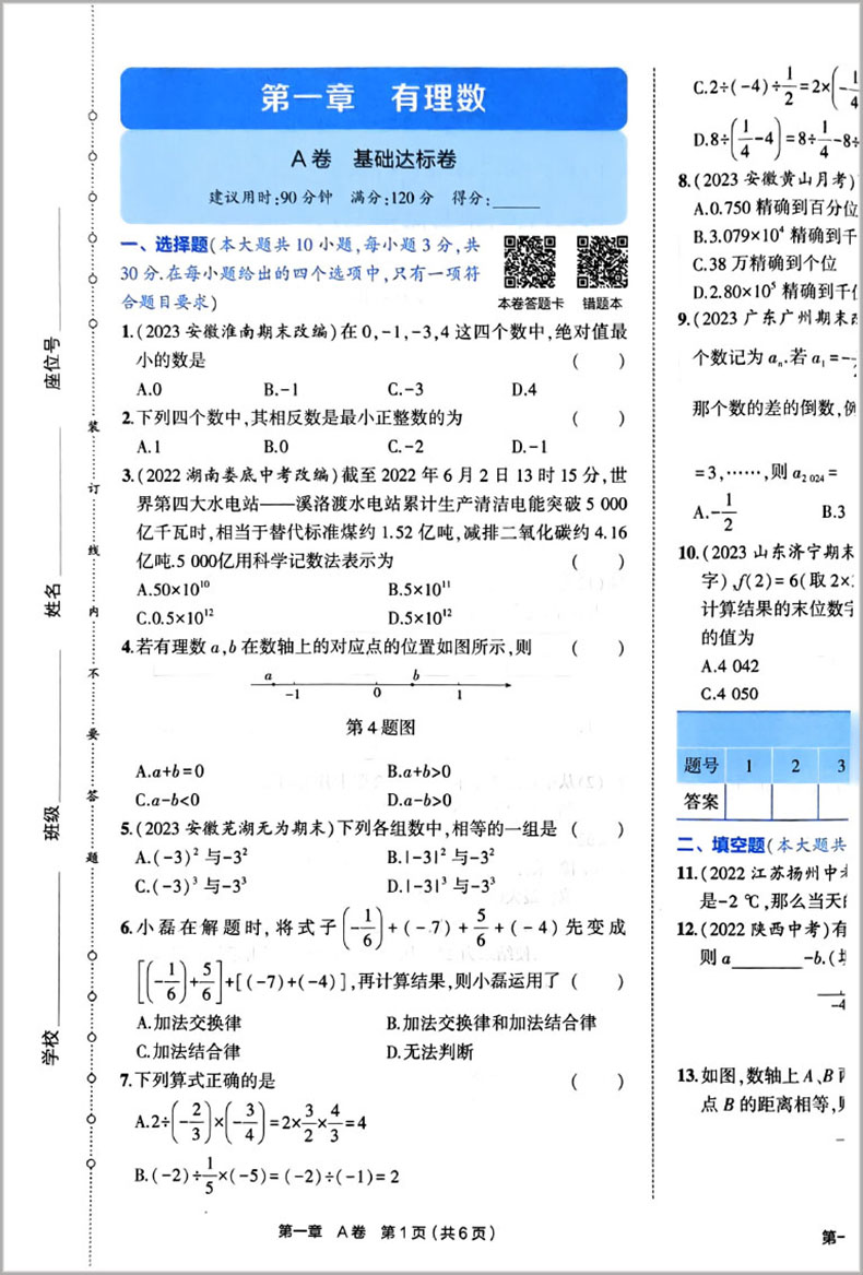 首页> 初中教辅> 七年级> 数学> 2024版 53全优卷初中七年级上册 数学 人教版