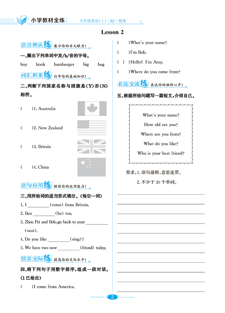 小学教材全练 五年级英语上册 人教精通版 薛金星
