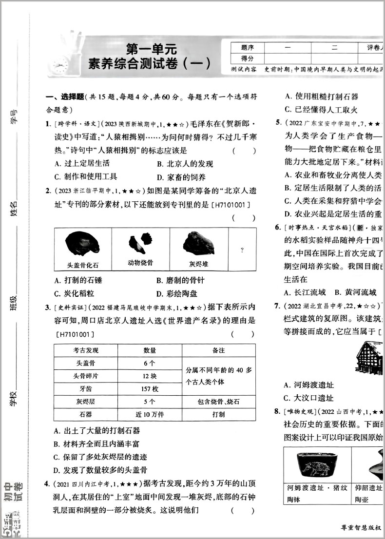 2024版 五年中考三年模拟 七年级上册历史 人教版
