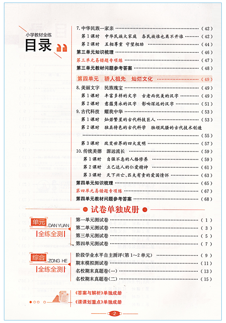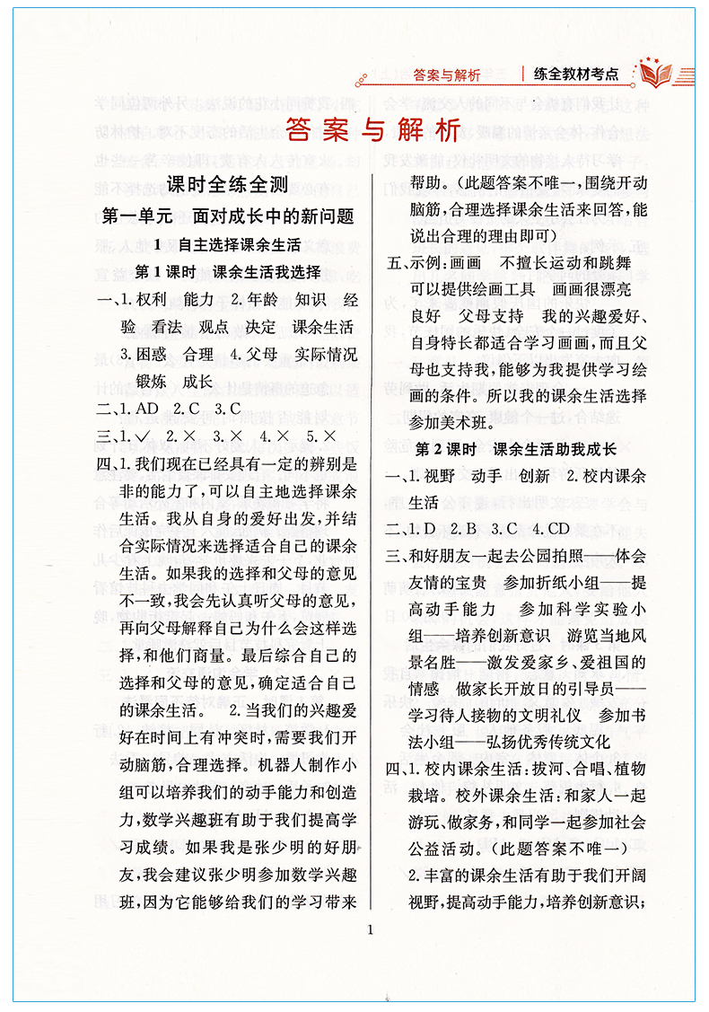 小学教材全练 五年级道德与法治上册 人教 薛金星