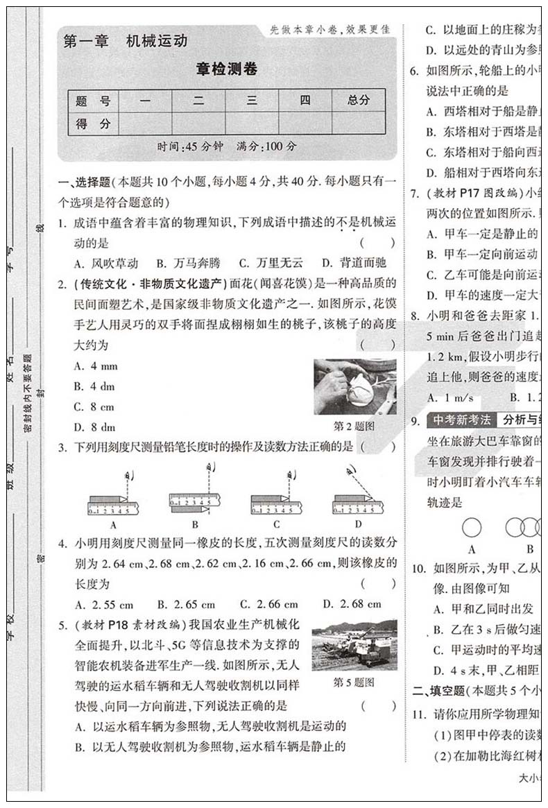 首页> 初中教辅> 八年级> 物理> 2024版万唯中考大小卷八年级上册物理 人教版