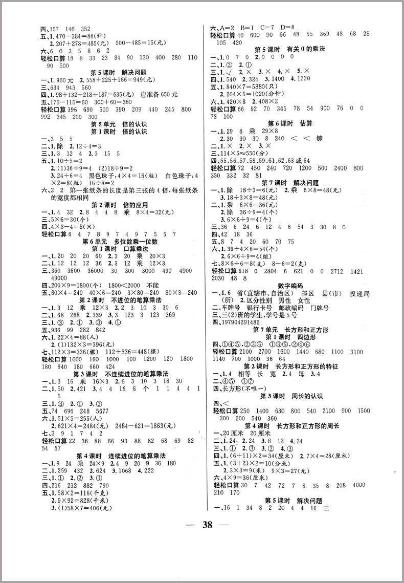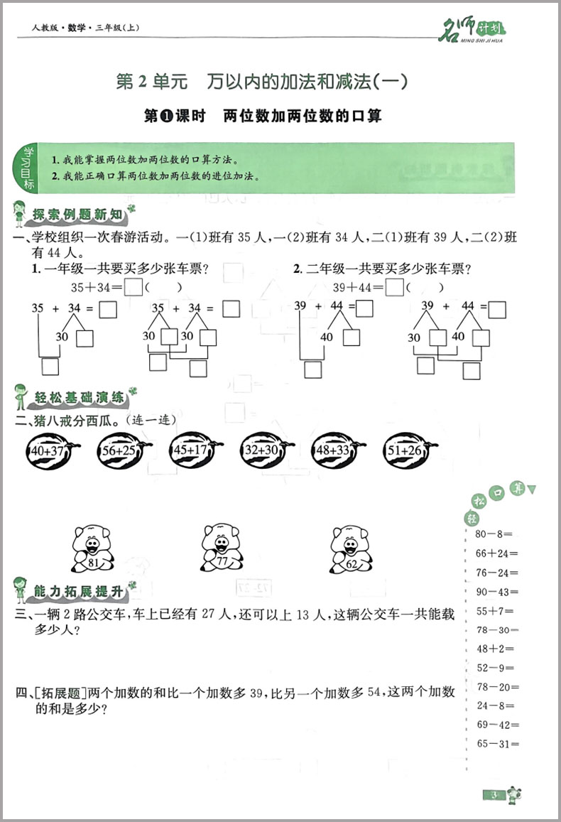 名师计划高效课堂三年级数学上册人教版