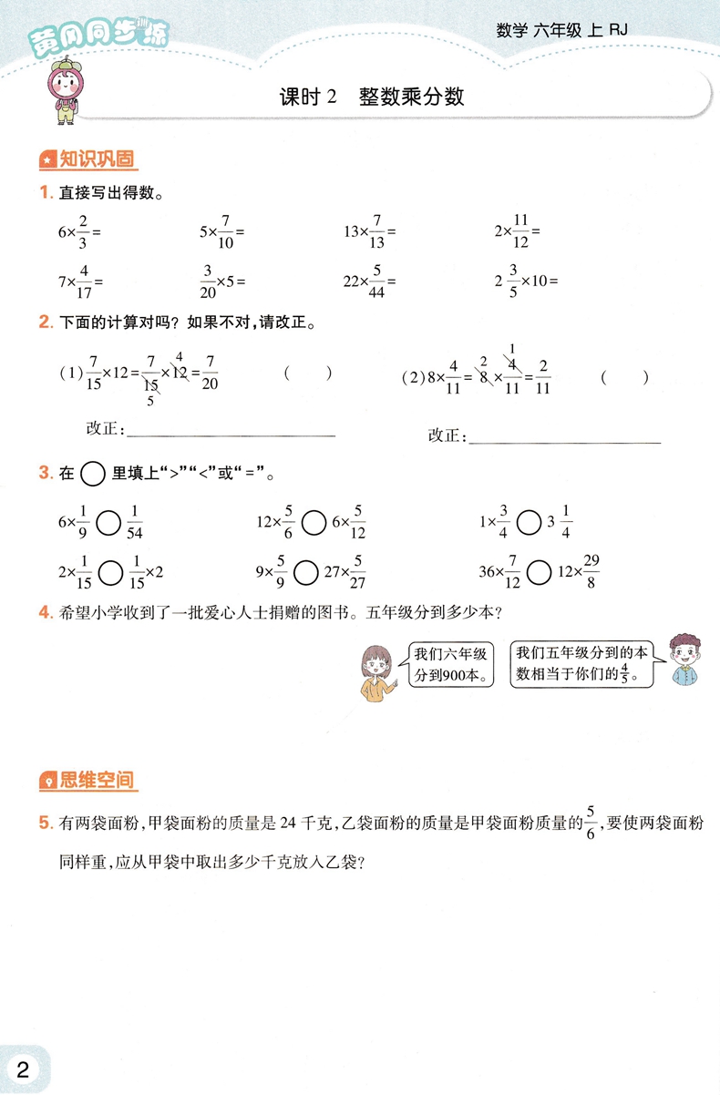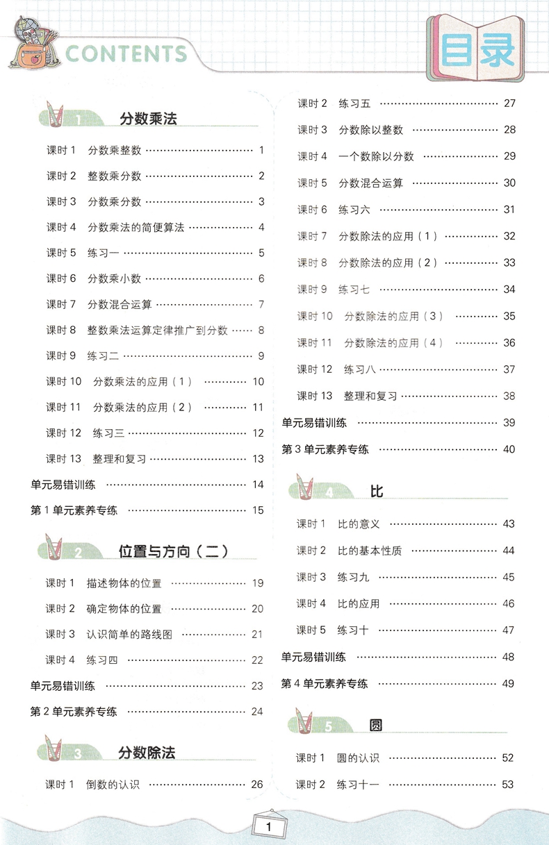 黄冈同步练一日一练六年级数学上册 人教版 万向思维