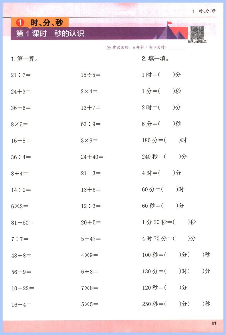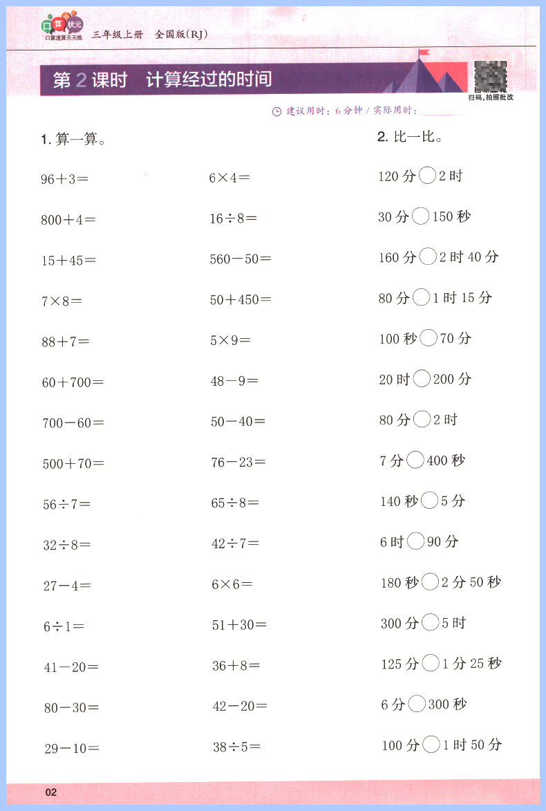 木头马口算小状元口算速算天天练 三年级数学上册 人教全国版