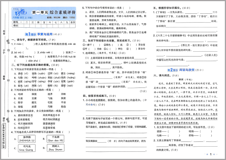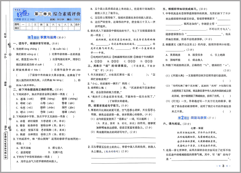 首页> 小学教辅> 六年级> 语文> 荣德基好卷六年级语文上册 人教版