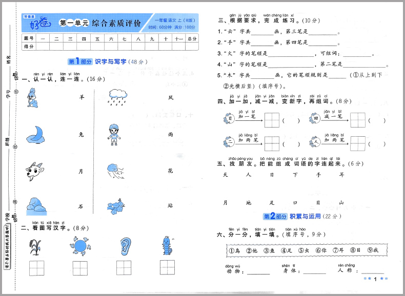 首页> 小学教辅> 一年级> 语文> 荣德基好卷一年级语文上册 人教版
