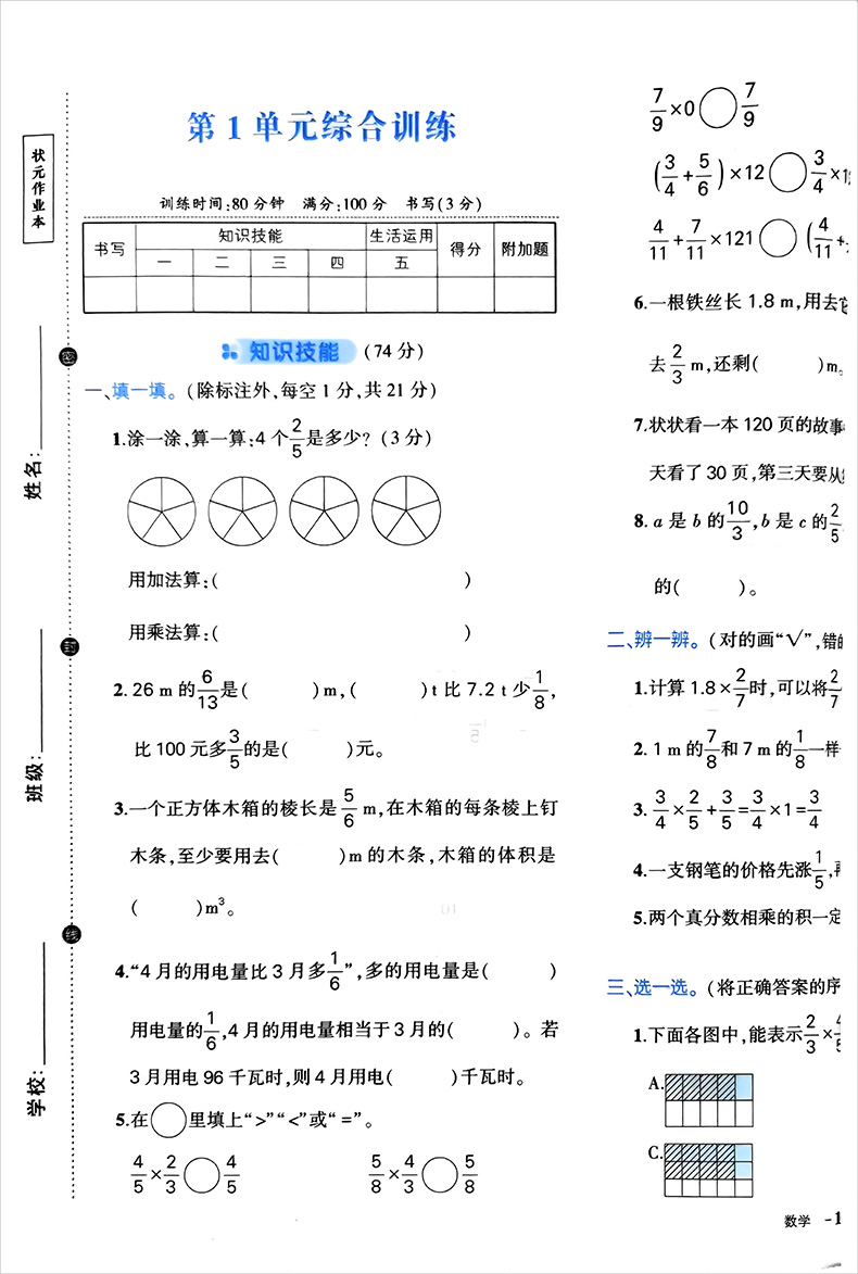 首页> 小学教辅> 六年级> 数学> 状元作业本 六年级数学上册 人教版