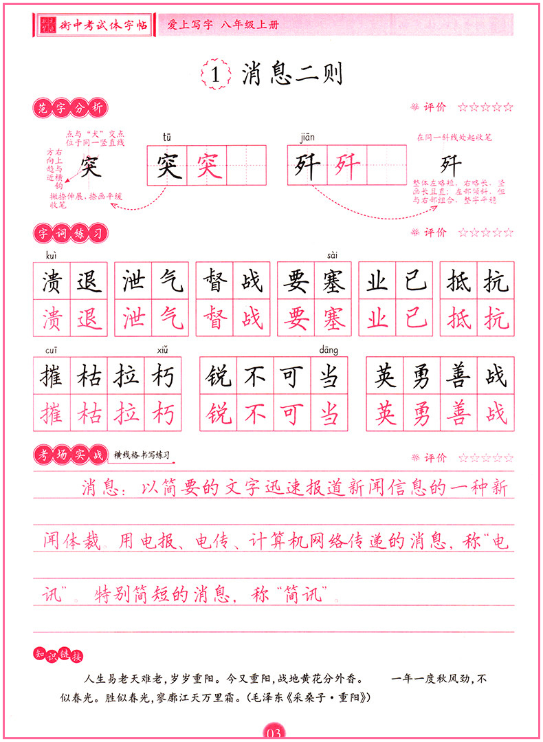 2024版华版文化 衡中考试体字帖 爱上写字八年级上册人教版(正楷)