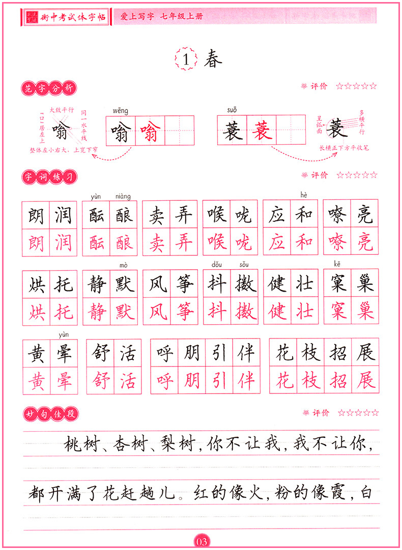 2024版华版文化 衡中考试体字帖 爱上写字七年级上册人教版(正楷)