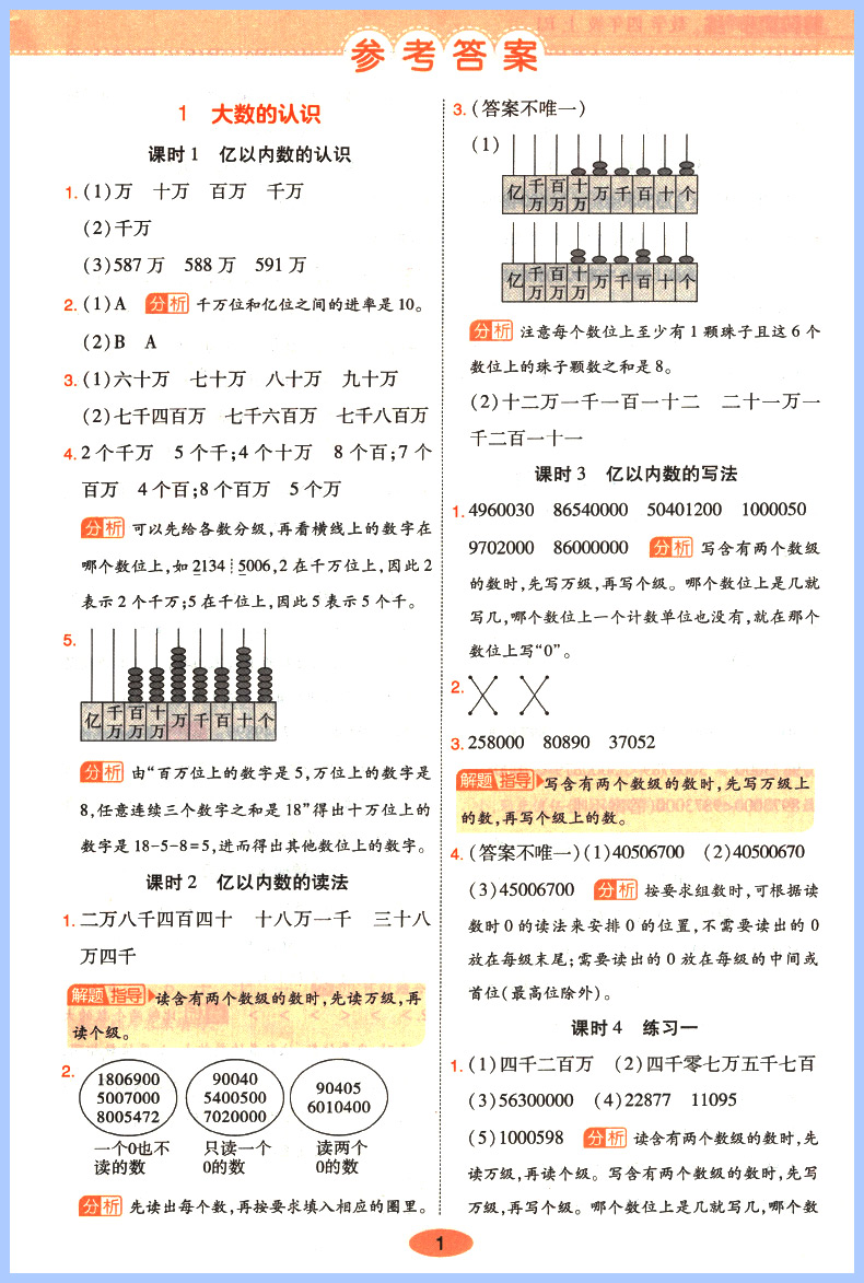 黄冈同步练一日一练四年级数学上册 人教版 万向思维