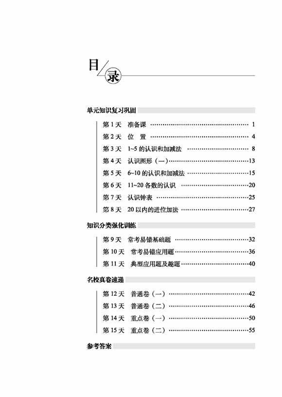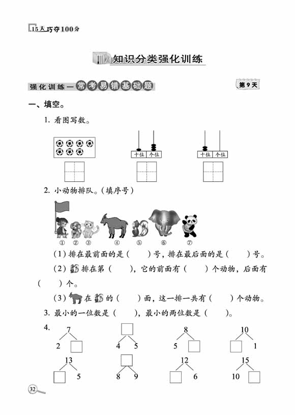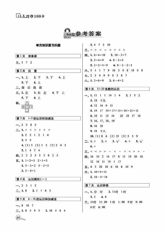 2023秋15天巧夺100分数学一年级上册人教版)