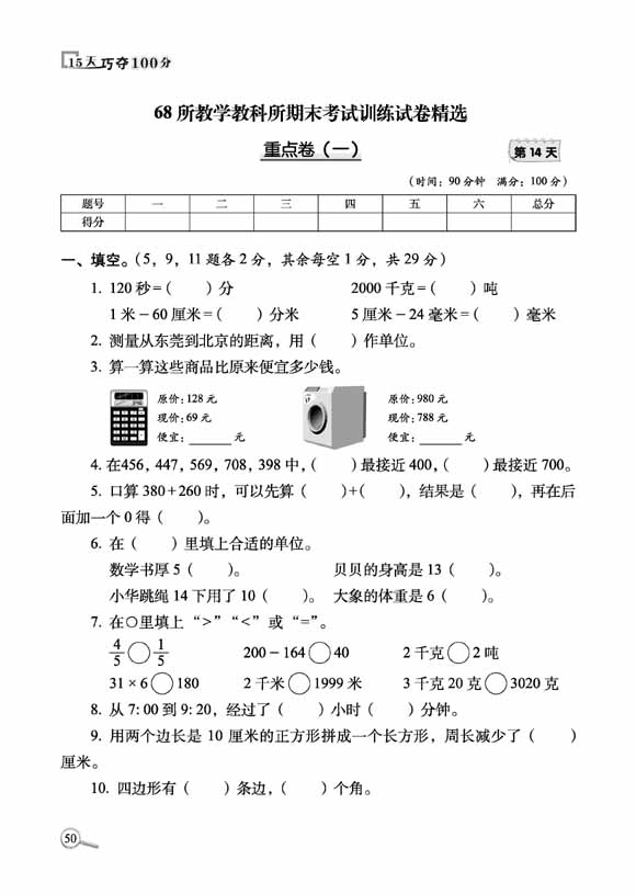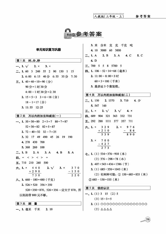 首页> 小学教辅> 三年级> 数学> 2023秋15天巧夺100分数学三年级上册人教版