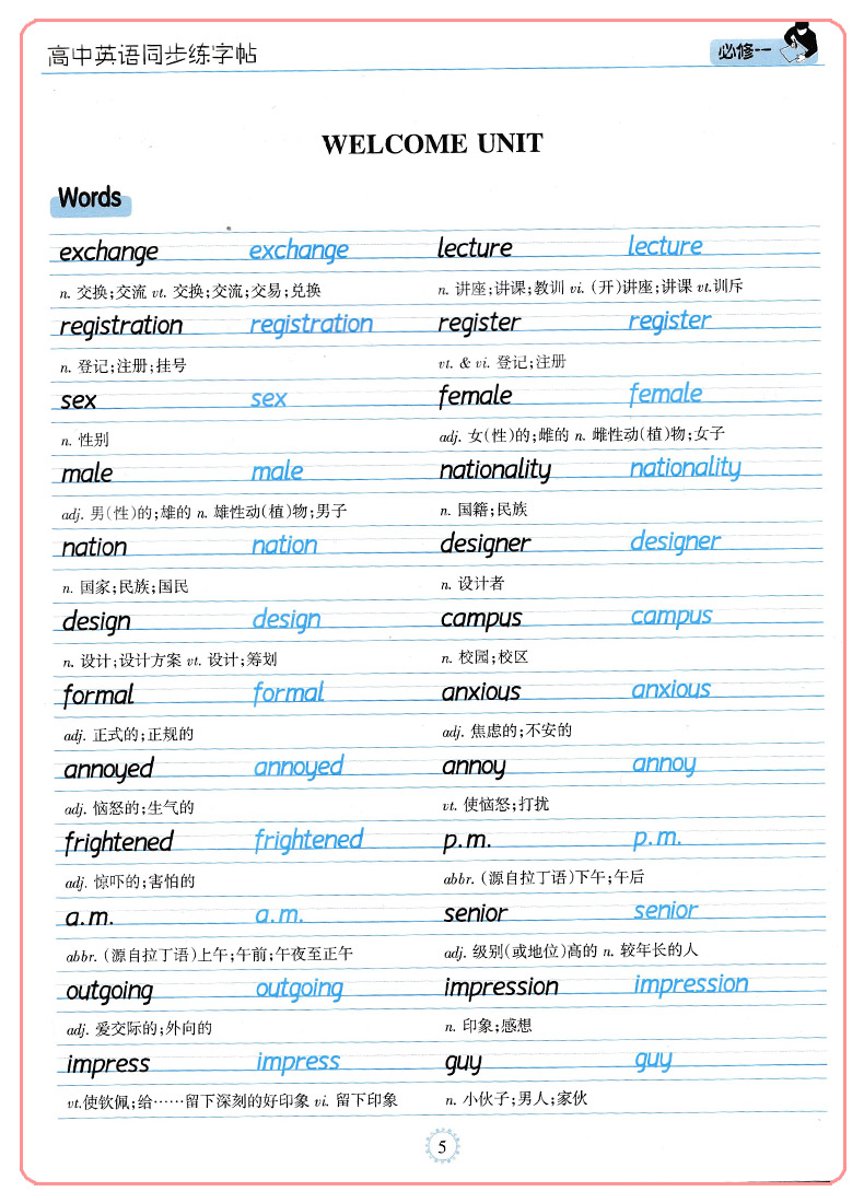 首页> 高中教辅> 高一年级> 英语> 笔墨先锋 高中英语同步练字帖 必修一