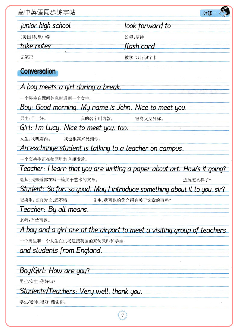 笔墨先锋 高中英语同步练字帖 必修一