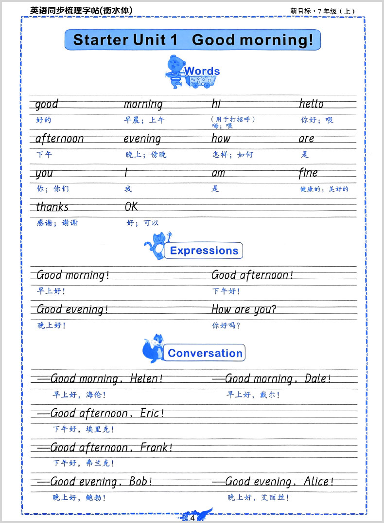写意年华 英语同步梳理字帖 衡水体七年级上册