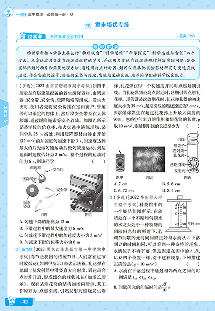 2024版天星教育一遍过 高中物理必修第一册 人教版