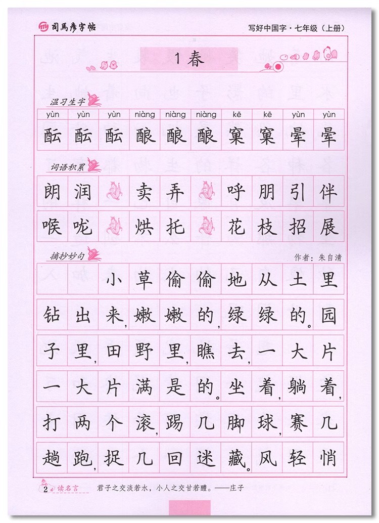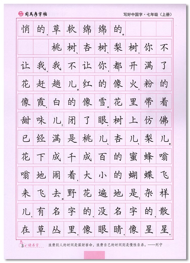 司马彦字帖 七年级上册 写好中国字同步课课练