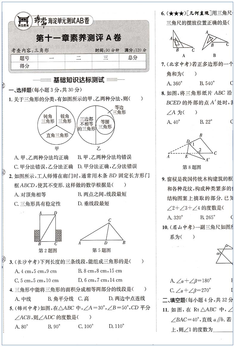 首页> 初中教辅> 八年级> 数学> 2024版非常海淀单元测试AB卷 八年级上册数学 人教版