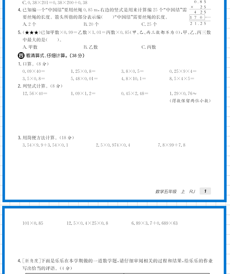 2023秋非常海淀单元测试AB卷 五年级数学上册人教版