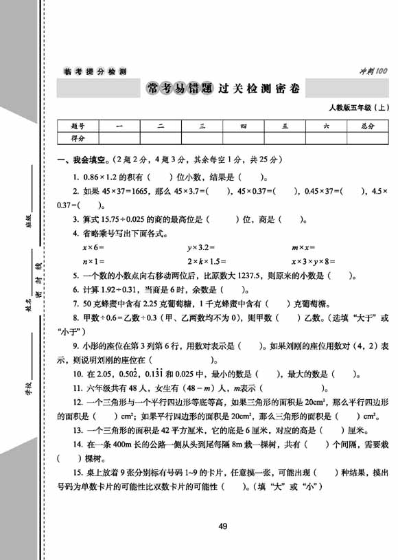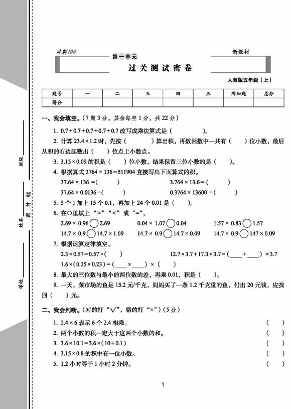 2023秋 期末冲刺100分 五年级上册数学 人教版