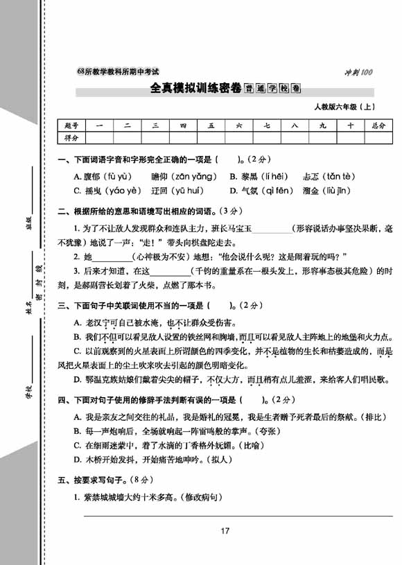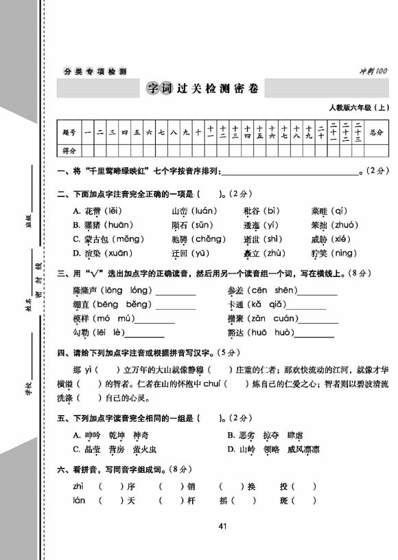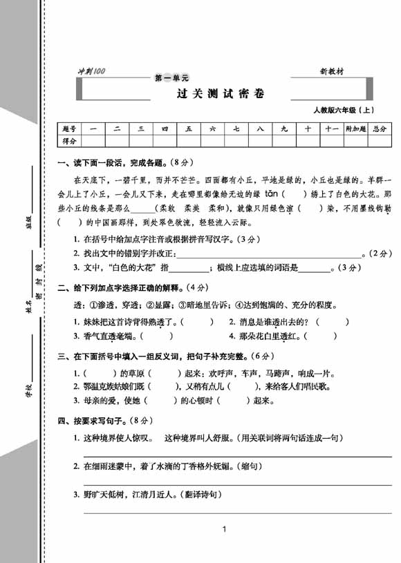 2023秋 期末冲刺100分六年级上册语文 人教版