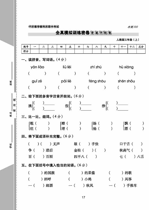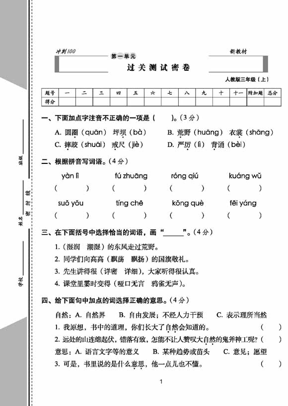 2023秋 期末冲刺100分三年级上册语文 人教版