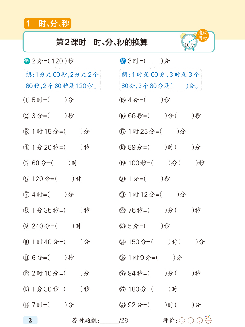 2023秋 小学学霸口算 三年级上册数学 人教版 绿卡图书