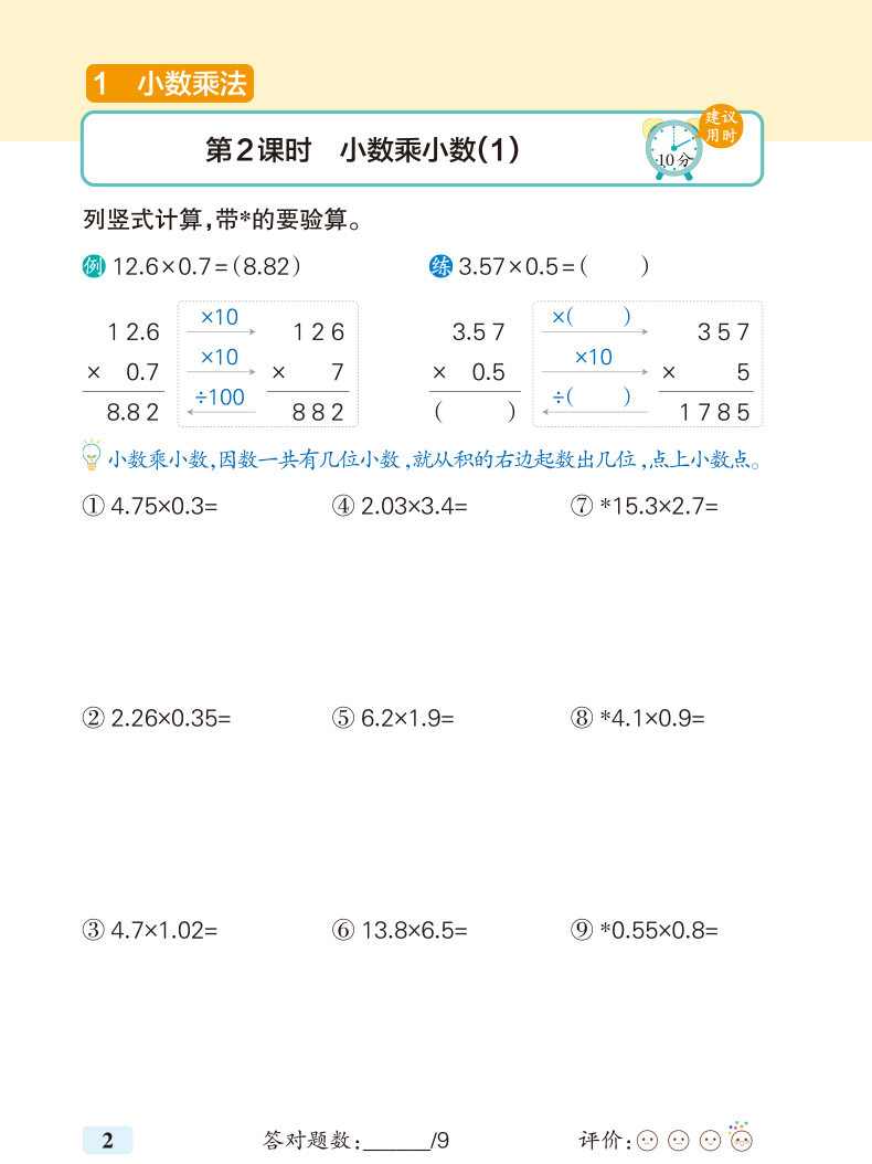 2023秋 小学学霸口算 五年级上册数学 人教版 绿卡图书