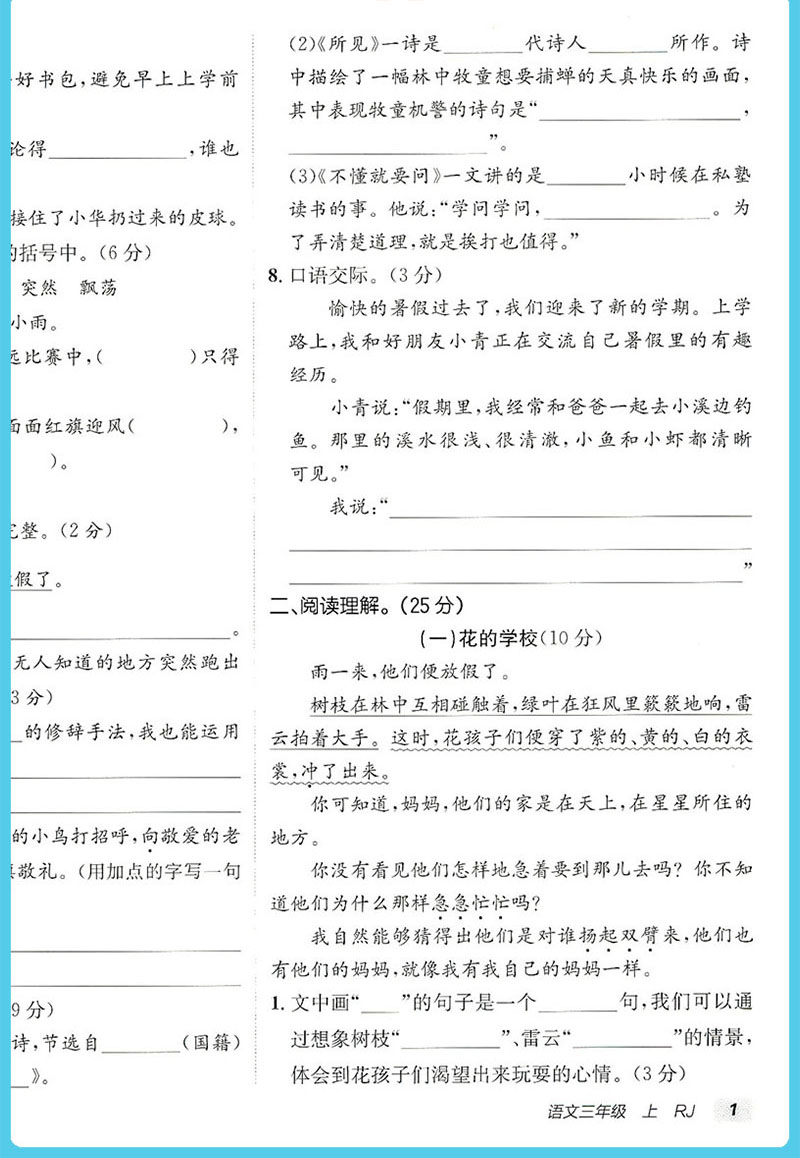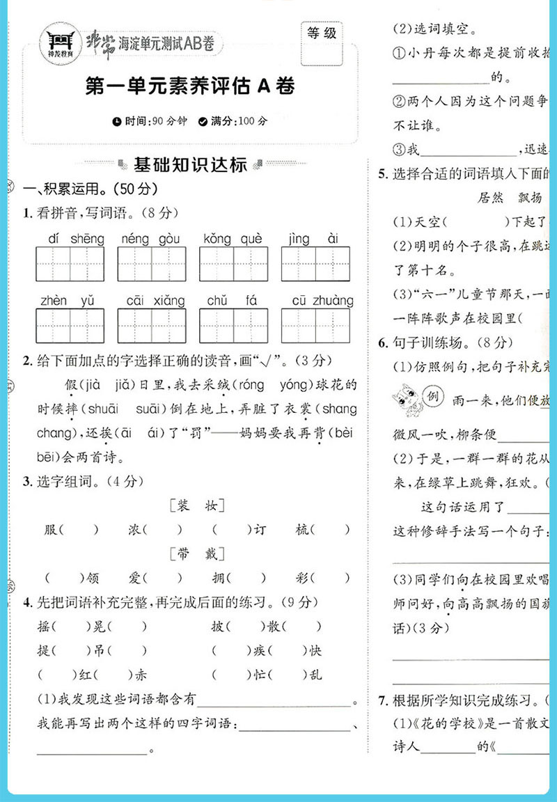 2023秋非常海淀单元测试AB卷 三年级语文上册人教版