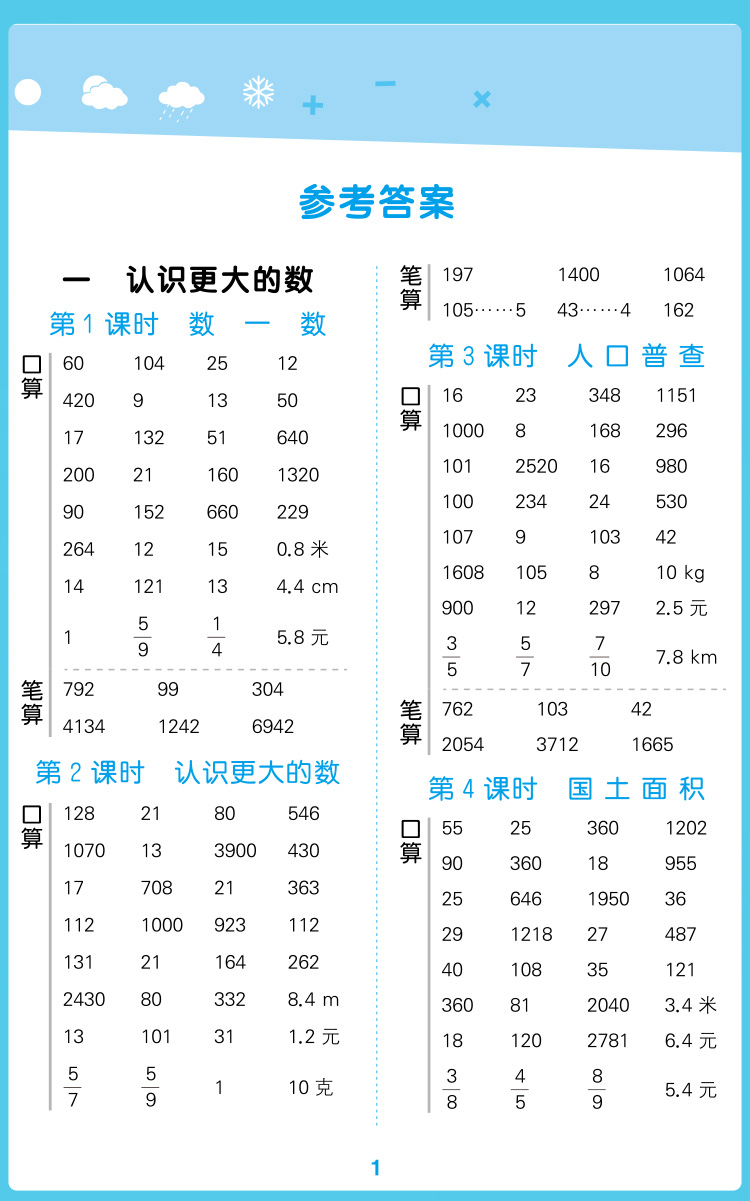 2023秋 53小学口算大通关 四年级上册数学 北师大版