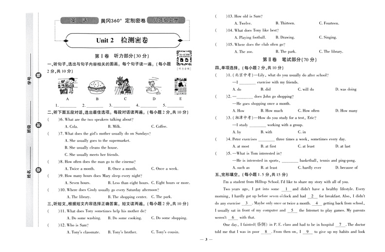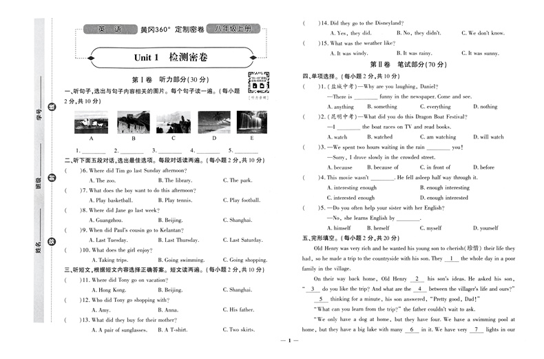 首页> 初中教辅> 八年级> 英语> 2023版黄冈360定制密卷八年级上册英语